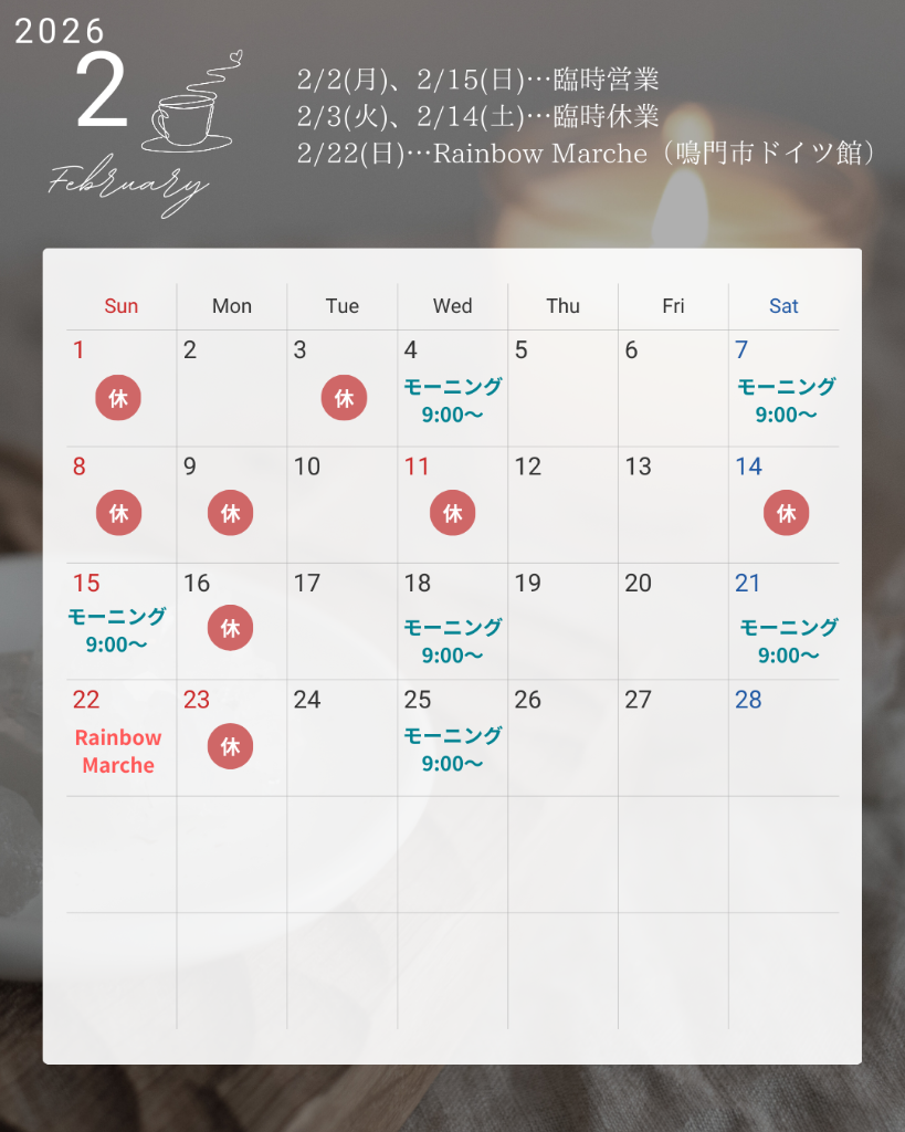 2月は臨時営業や臨時休業、イベント出店がありますので、ご来店前にカレンダーのチェックをお願いします🙌